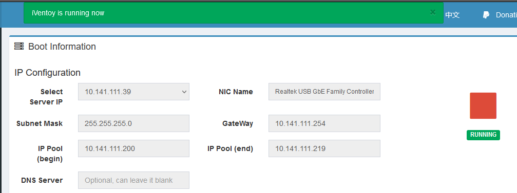 Now start iVentoy by running iVentoy_64.exe, this should open iVentoy's web interface. Here we can start iVentoy's built-in DHCP server to start serving PXE.