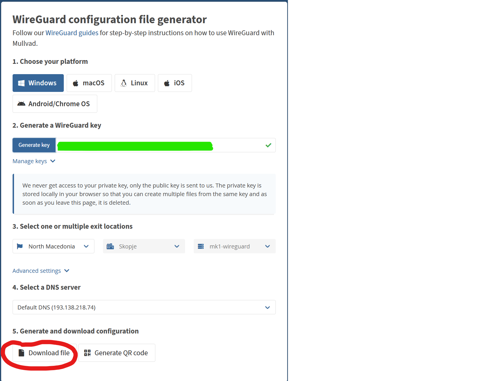 First go to mullvad.net, login to your account and go to the following URL: https://mullvad.net/en/account/#/wireguard-config/, here select your desired settings and click download file.